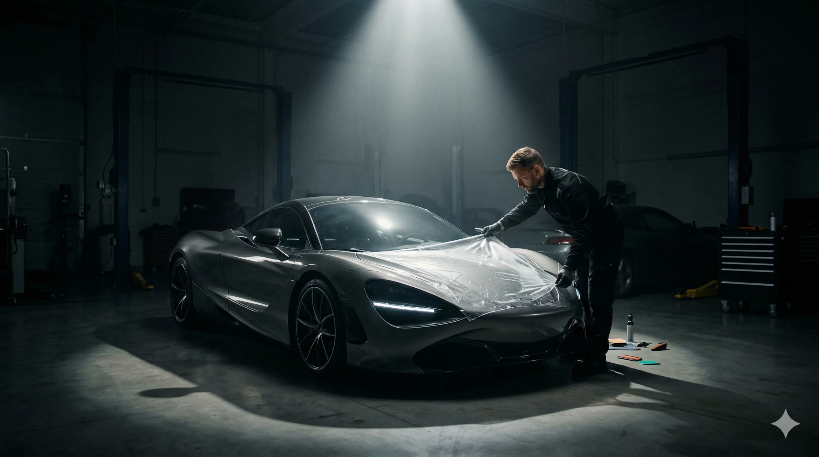 Защитная полиуретановая плёнка (PPF) толщиной 8 мил — надёжный барьер от сколов, царапин и дорожной химии. Самовосстанавливается под воздействием тепла, не желтеет и сохраняет блеск краски годами.
